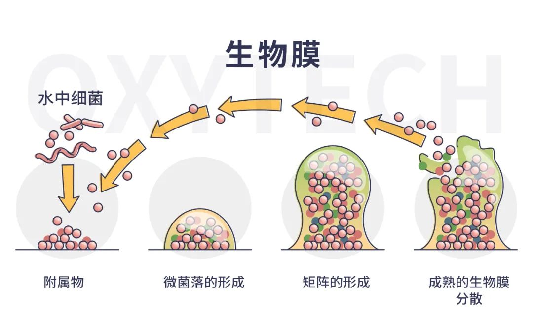 典型场景:纯化水管道、储罐内壁因BCC菌群形成生物膜,常规消毒剂渗透率不足30%。